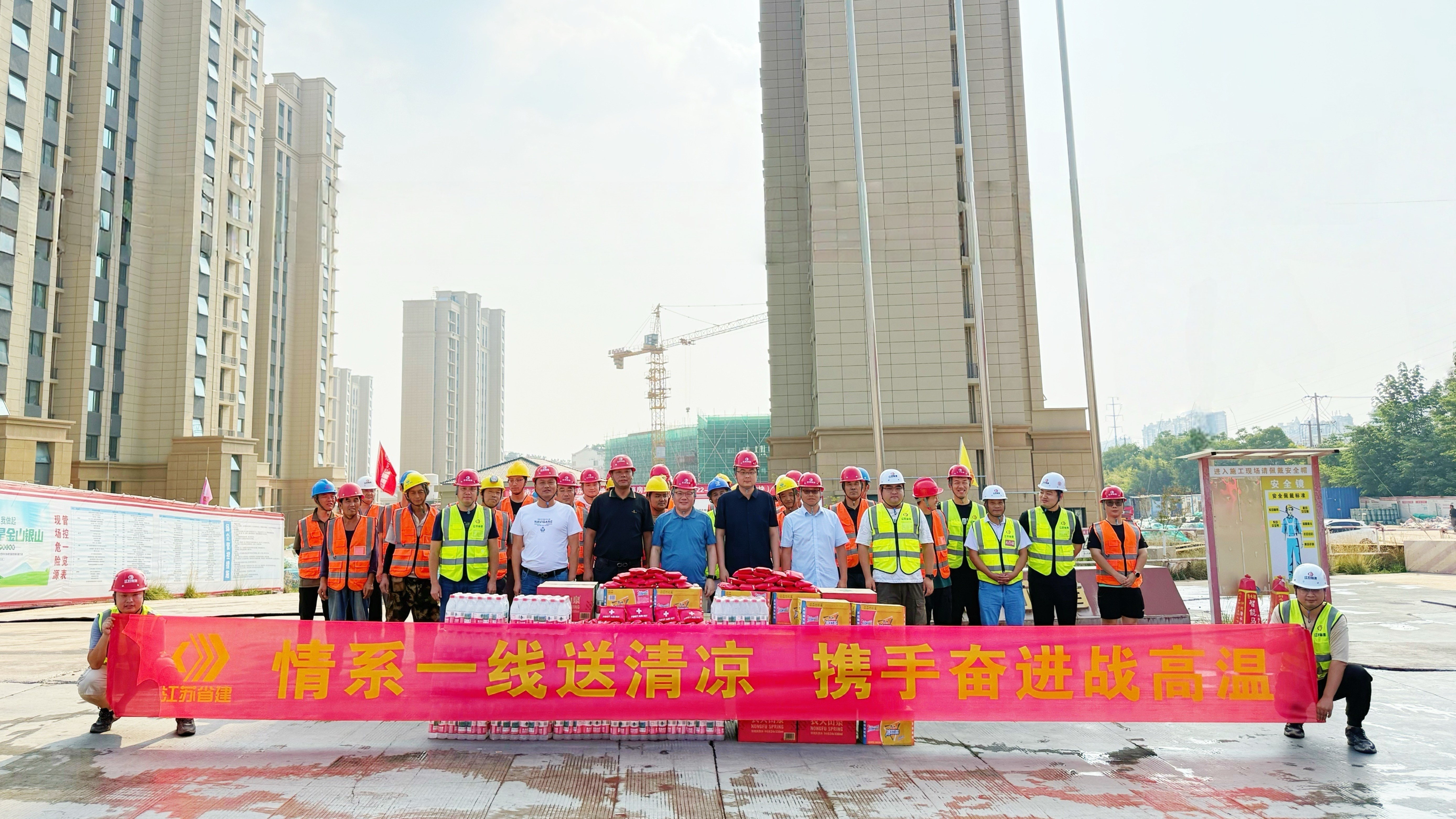 炎炎夏日送清涼,情意深深暖人心。為切實(shí)做好高溫天氣下的安全生產(chǎn)工作,保障一線廣大員工的身心健康,7月17日,集團(tuán)黨委書記、執(zhí)行總裁張震宇,副總裁高寶儉分別帶隊(duì),深入南京城東污水處理廠、312國(guó)道、湯山PC工廠等項(xiàng)目和生產(chǎn)車間,看望慰問在高溫下堅(jiān)守崗位的一線員工,為他們送去防暑降溫物品。